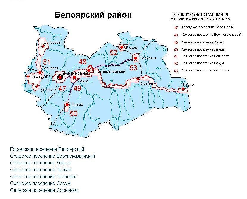 - Городское поселение Белоярский, с находящимся в его составе населённым пунктом городом Белоярский (административный центр).